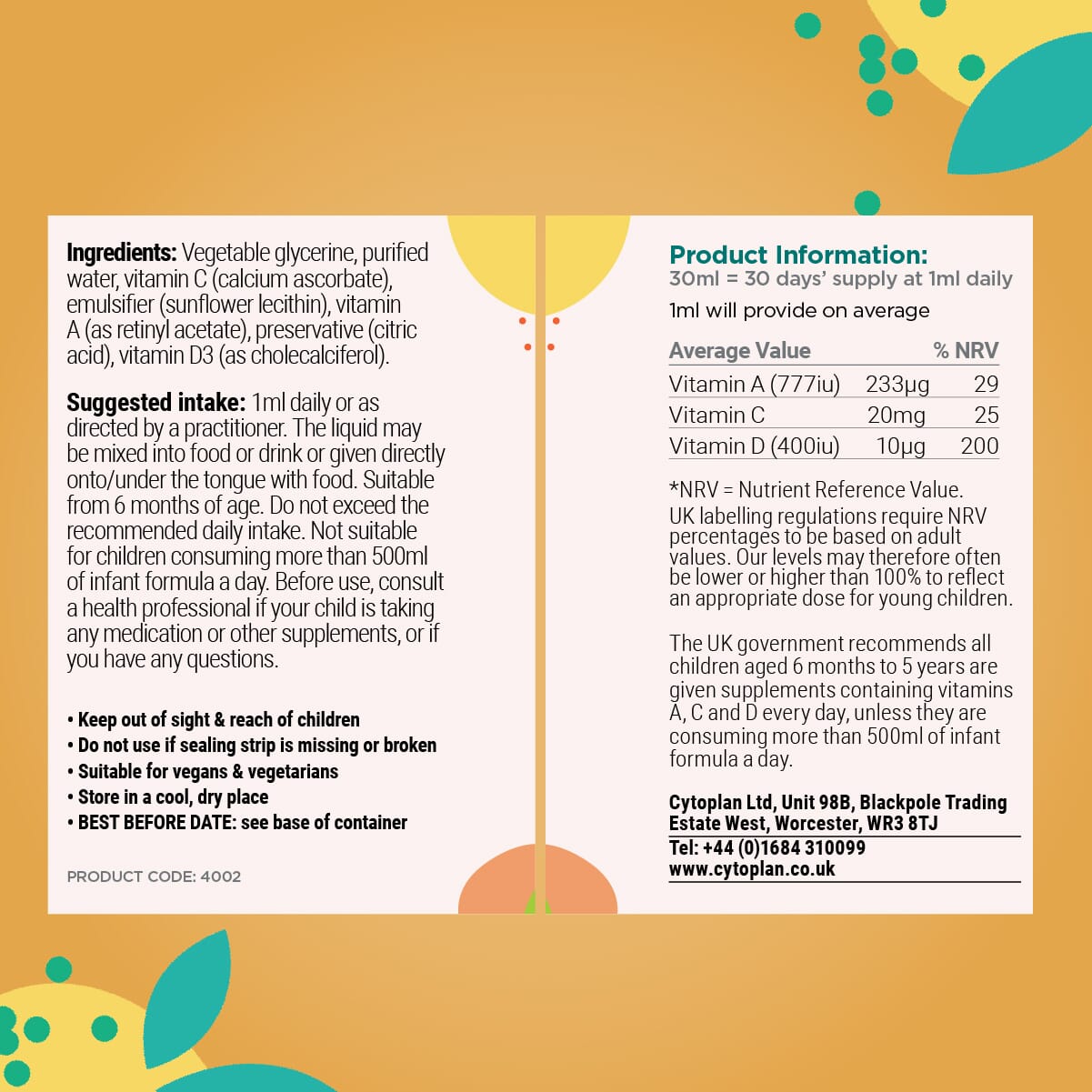 Not suitable for children consuming more than 500ml of infant formula a day. Before use, consult a health professional if your child is taking any medication or other supplements, or if you have any questions.