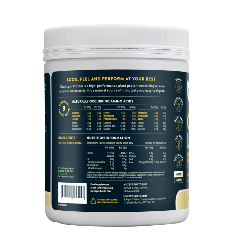 All natural, patented, water-extracted, European golden pea protein isolate with all nine essential amino acids. No dairy, gluten, soya, GMOs, lectins. FODMAP, paleo, vegan, halal and kosher friendly. Keto compatible. Easily assimilated by even the most vulnerable gut.