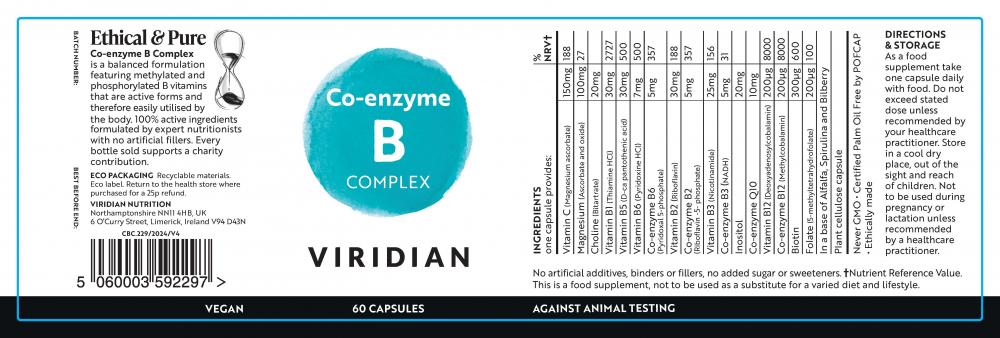 A balanced B-complex providing B vitamins alongside their methylated and phosphorylated forms. These ‘co-enzyme’ forms of the essential nutrients are available in a format that are a step further down the metabolic pathway and therefore more easily utilised by the body.