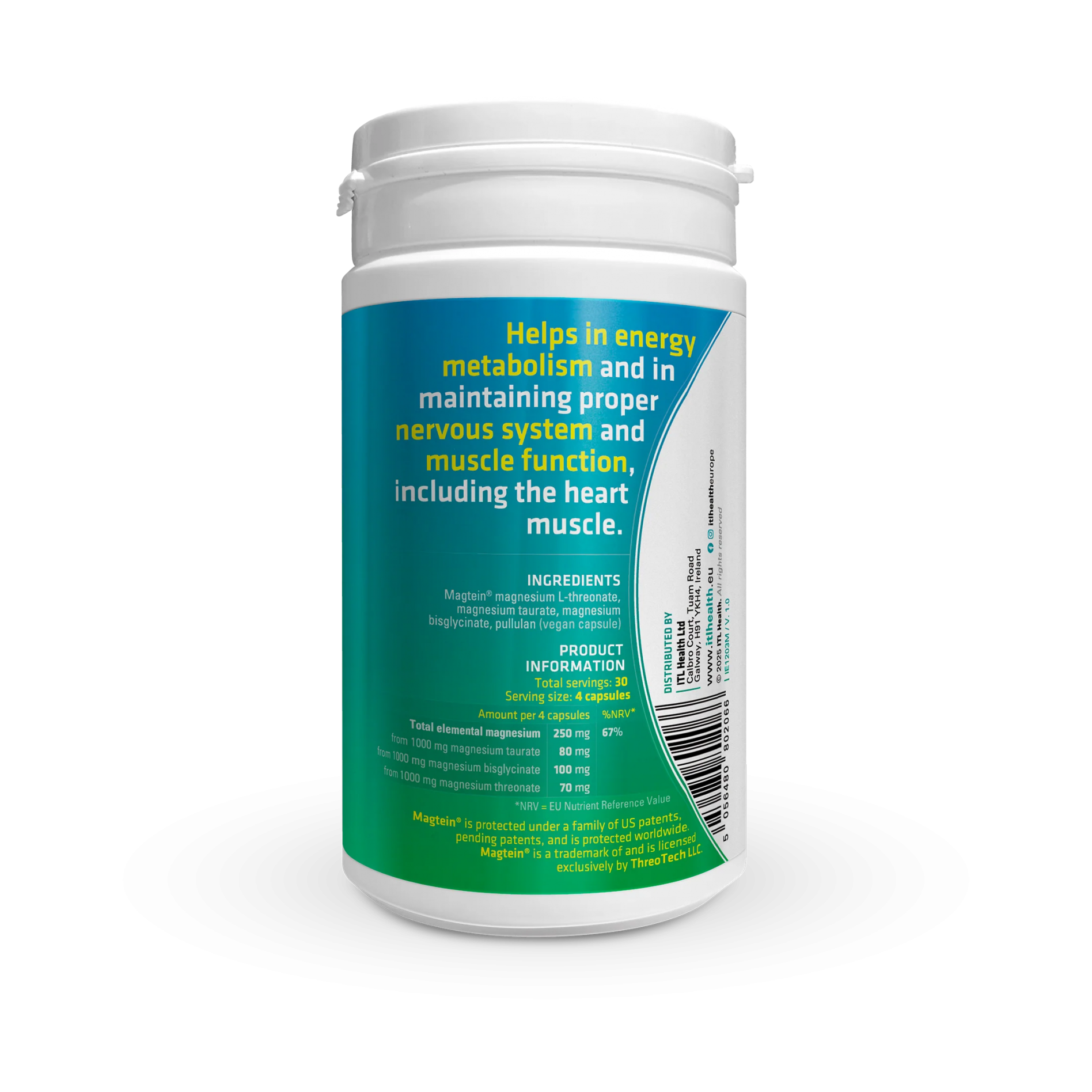 Magnesium taurate, magnesium bisglycinate, magnesium L-threonate (Magtein®), pullulan (vegan capsule)