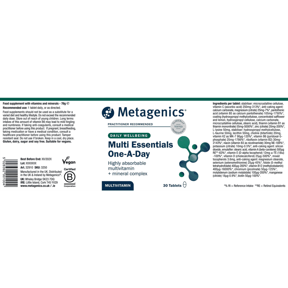Multi Essentials One-A-Day is a comprehensive multivit and mineral formula suitable from age 12. Providing excellent levels of vit D, folate, zinc, B vits, vit K and amino acids. It is also free from iron, iodine and copper so is the perfect formula for those who need to avoid these minerals.